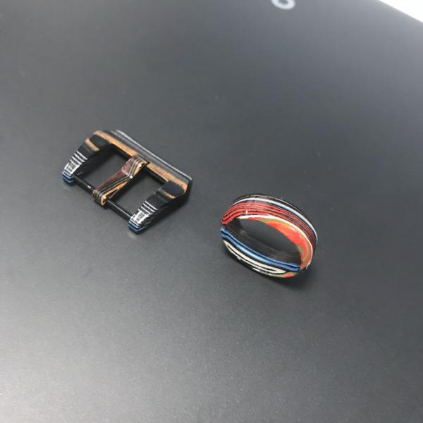 the carbon fiber material is made into a color carbon fiber material by dyeing, The lines with different effects can be customized according to requirements, which are suitable for high-end jewelry decoration accessories, ring, bracelet, watch case, watch decoration, etc..